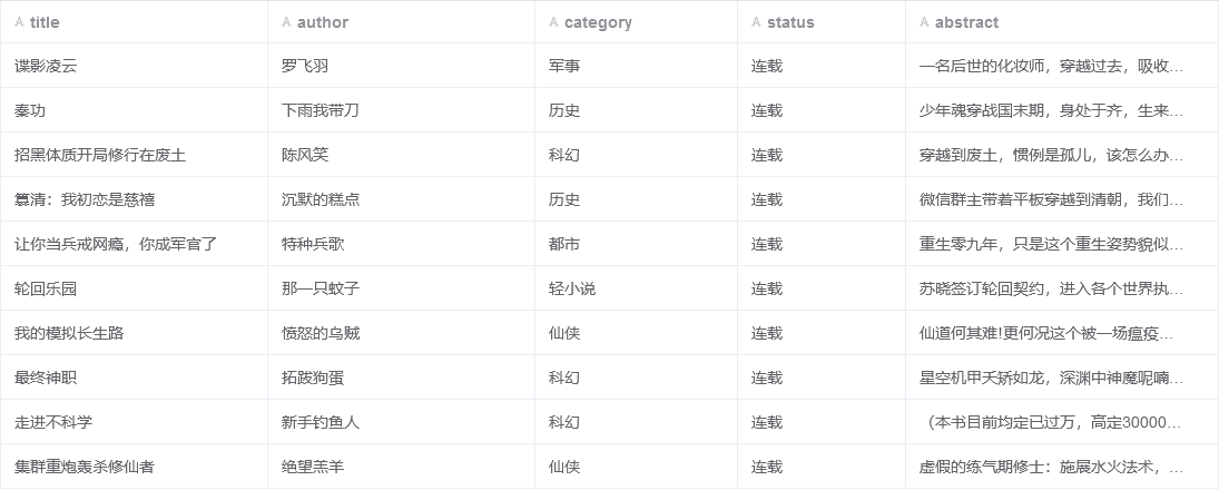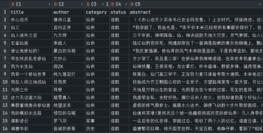 1 scrapy crawl qidian_novel -o novel.csv