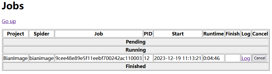 运行成功后在 6800 端口 Jobs 中可以看到正在运行的爬虫项目: