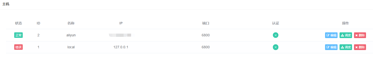 主机管理 首先在主机管理中添加分布式爬虫主机,配置和结果如下图所示: